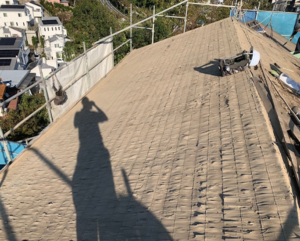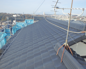 【お客様の声】 台風で築50年以上経った屋根側が災害を受けたのをきっかけに以前から耐震上、屋根を軽量化することを進めれれていたので、思い切って工事をしてらいました。見た目を気にしていただのでガルバリュウム製のものなど様々な材質を見せて頂き、その中で今回はケイミューの「樹脂混入繊維補強軽量セメント瓦 ROOGA 雅」を選びました。価格は他のものより高かったですが、仕上がりは従来の瓦と大きく違わず満足できました。屋根の重さも以前より約1/2になりこれで耐震の問題も解決できました。親切丁寧にご提案頂きありがとうございました。
